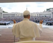 St. Michael also figures in the annals of Pope St. Gregory the Great. During the pestilence that struck Rome in the year 590, Gregory organized a great penitential procession through the streets of the Eternal City to beg God to withdraw the plague. Tradition says that when the march passed by the massive tomb of Emperor Hadrian, St. Michael appeared on its summit sheathing his sword, and the epidemic ceased. Today Hadrian’s fortified tomb is called the Castel Sant’Angelo — Castle of the Holy Angel — and for centuries it has been topped by a statue of St. Michael, dressed in the armor of a Roman soldier, returning his sword to the scabbard.