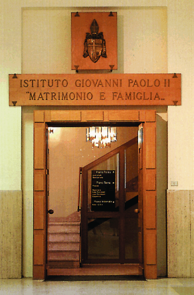 The entrance of the Pontifical John Paul II Theological Institute for Marriage and the Family (Photo G. Galazka). In the circle, Father Maurizio Chiodi.