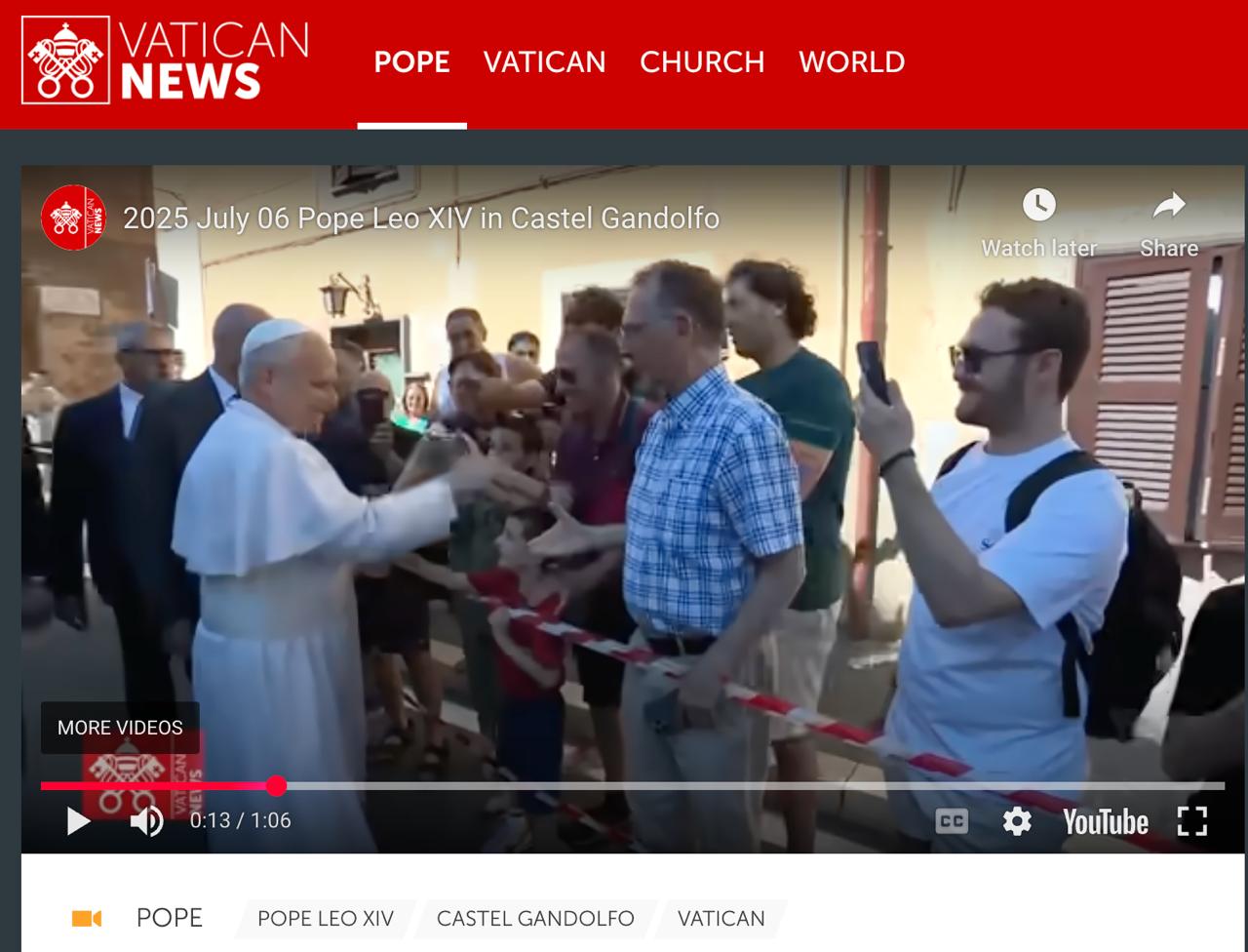 Below the photo is a video of Pope Leo’s arrival to Castel Gandolfo, and it shows our brief handshake at second 1:34.