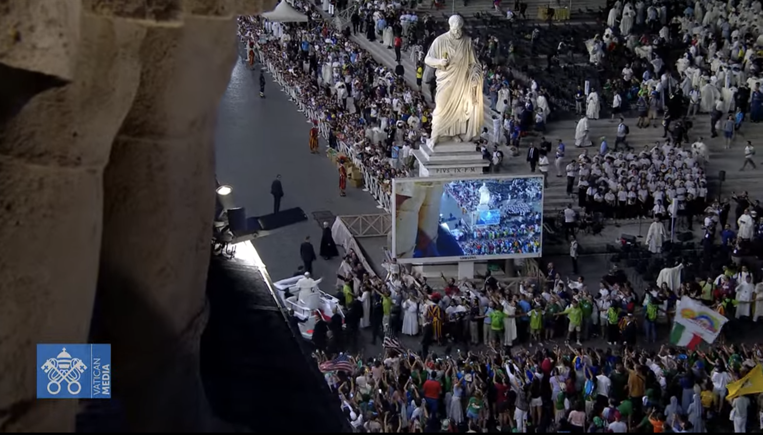 Leo, after traveling through the crowds — he went around the entire piazza, then all the way down the via della Conciliazione and back. Then, he stopped at the front of the pizza, got out of the popemobile, and spoke extemporaneously to the young people, concluding by giving his apostolic blessing.